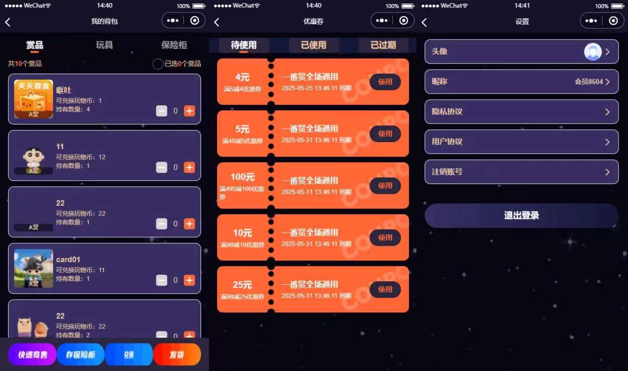 通过优惠券的设置,商家可以灵活地进行促销活动,提高用户黏性和购买欲望。 优惠券种类多样,可以是折扣券、满减券、特定商品优惠券等,增加用户的购物乐趣和满意度。 每个盲盒都可以设置指定优惠券,用户在开盲盒时有机会获得这些优惠券。